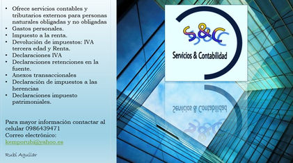 Servicios de contabilidad para personas naturales obligadas y no obligadas, anexos, formularios iva y renta. Además se ve de delicioso vino de mortiño en varías presentaciones.